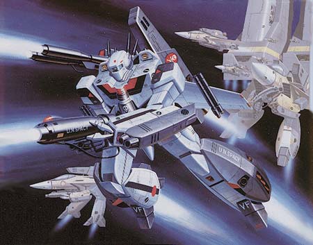 How to sum up Macross? Well those of you who are 1980 savy (not sure if they were around in the 70s though) will remember the transforming robot phenomenon that was 'Transformers'. Well Macross is that but far cooler. Airplanes resembling F14 lookalikes, transforming first into 'gerwalk' mode (plane with mini-arms and legs sticking out) to full humanoid form. There have been many versions made over the many years, some have become favourites while others haven't been popular.