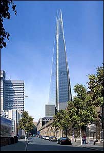 London reaches for the skies. These are some planned new buildings for London. On the left is proposed London Bridge Tower. On the right is the bishopsgate tower, which is already under construction. Click here for more pictures of some interesting London buildings.