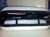 Here are some PS3 pics. I think that it looks kinda cool. Like a rounded off version of the original PS2 design. Hope it lives up to the hype. Even though the X-box 360 has already been launched, I'm still going to keep my magic beans (money) and wait for the PS3, which is rumoured, is going to be delayed even further. Maybe not a bad thing. I've heard many rumours about the X-box 360's problems, like over heating, OS errors etc. So maybe a delayed launch will mean a more successful launch.